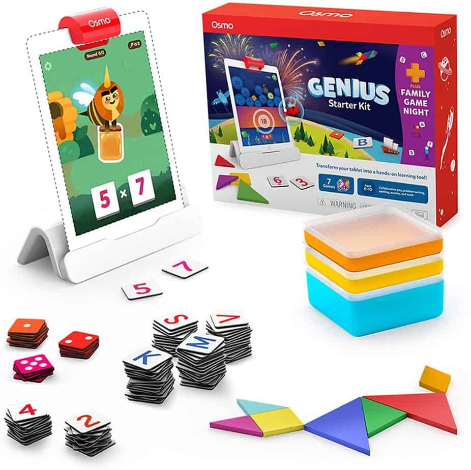 7. Osmo: We are not big on screen time for our kids but Osmo is one thing they are allowed to do on the iPad. We limit time to usually 15-30 mins (and not every day). I love that it is not passive because kids actually have to move the tiles to create words, solve math problems, do shape work, etc.