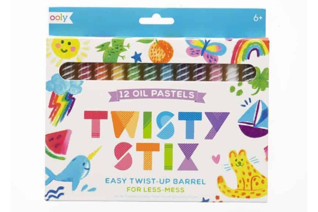 6. Oil pastels: Oil pastels are another one of our top kid’s art supplies. We love these because kids can use their hands to smudge, make fingerprints, mix colors, and generally get messy creating. They are sort of a mix between painting and drawing. I love the Ooly Twisty Stix because they are much less messy than your average oil pastel.
