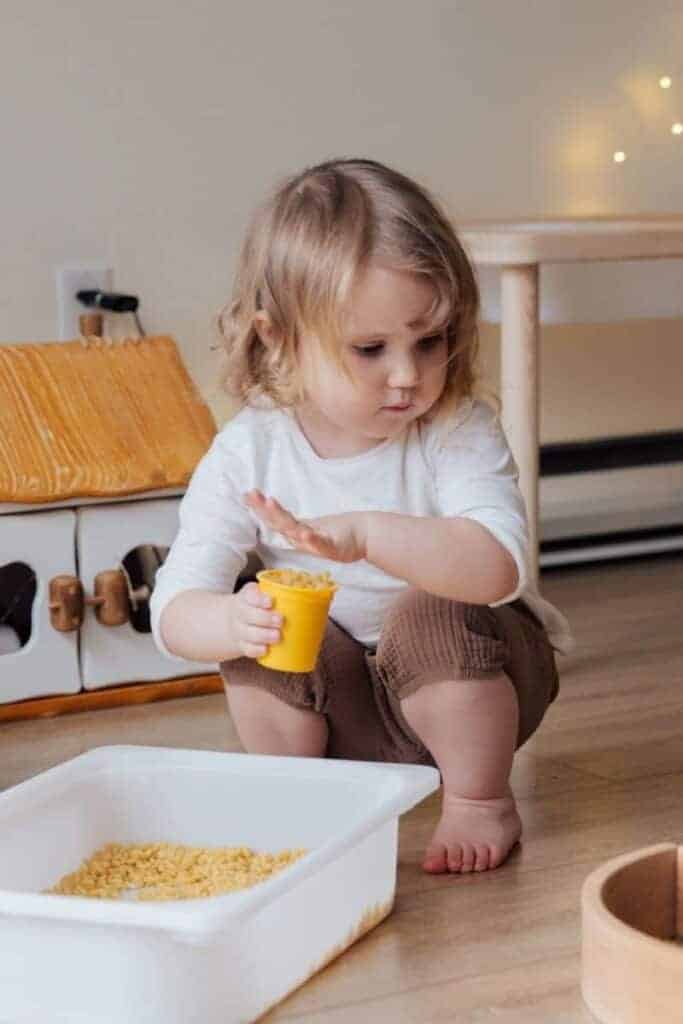 Really you can put anything in there and they will enjoy scooping, dumping, and pouring.