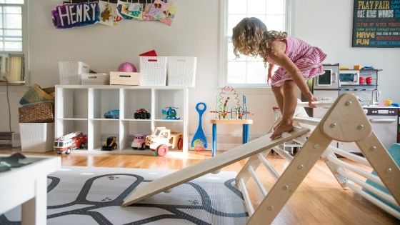 When selecting toys for the kids play space I try to be very intentional. I focus on choosing things that are high quality, made of natural and eco-friendly materials, open-ended and suitable for multiple age groups.