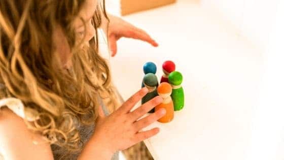Peg people: Instead of action figures, we like to have peg people. Our favorite are the Grimm’s ones. They are a beautiful wood and stained with non-toxic wood stain. They leave more to the imagination.