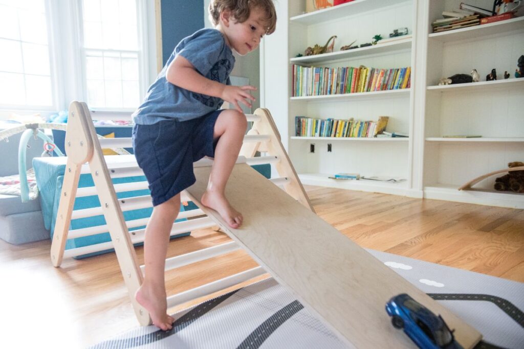 Pikler triangles are a fun way for kids to play while developing their gross motor skills and coordination. They are set up so that kids can choose how they want to play on them–meaning they are open-ended. Pikler triangles also encourage healthy risk-taking, which is crucial for child development. Shop our favorite Pikler Triangles here.