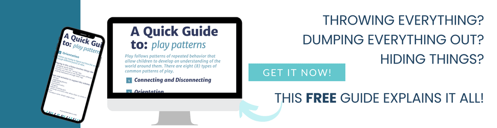 It’s also important to remember that toddlers are very often throwing things because that is part of HOW they are playing. The trajectory play schema is a developmental milestone usually happens around 18-24 months.